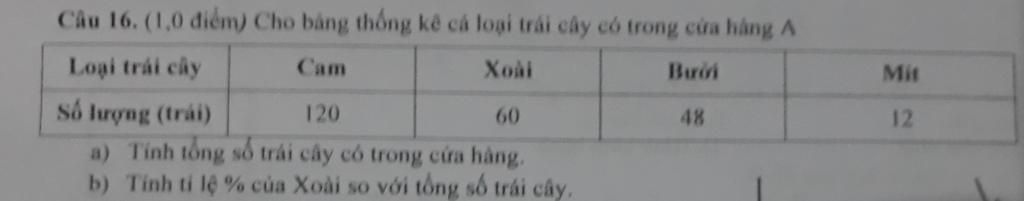 Vậy: `a)` Có `240` trái cây trong cửa hàng.