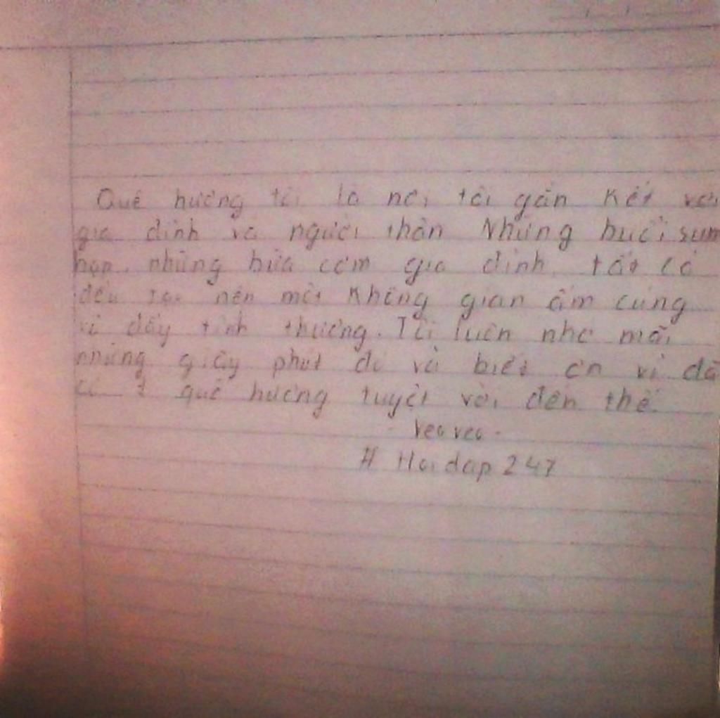 Quê hương tôi là nơi tôi gắn kết với gia đình và người thân. Những buổi sum họp, những bữa cơm gia đình, tất cả đều tạo nên 1 không gian ấm cúng và đầy tình thân. Tôi luôn nhớ mãi những giây phút đó và biết ơn vì đã có 1 quê hương tuyệt vời đến thế.