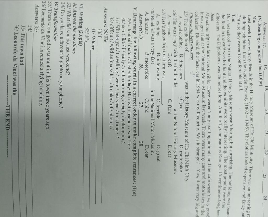 IV. Reading comprehension (1.0pt)