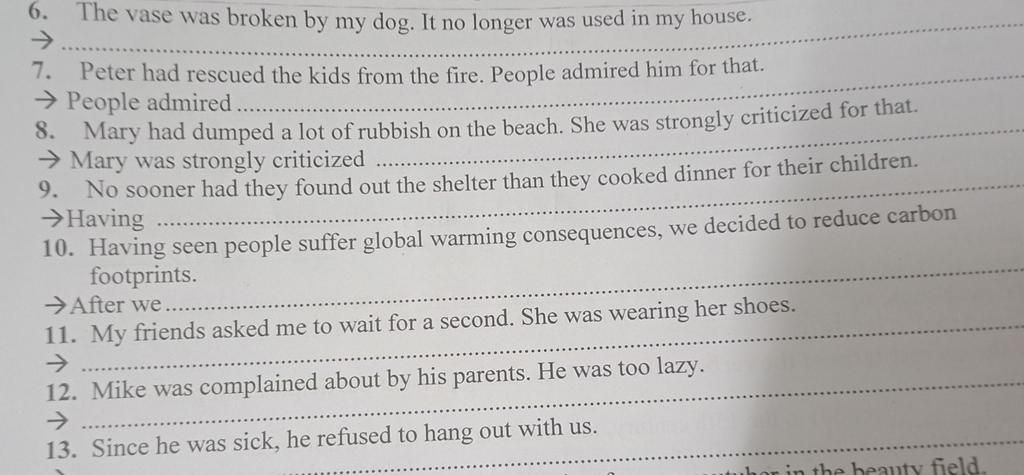8. Mary was strongly criticised for having dumped a lot of rubbish on the beach.
