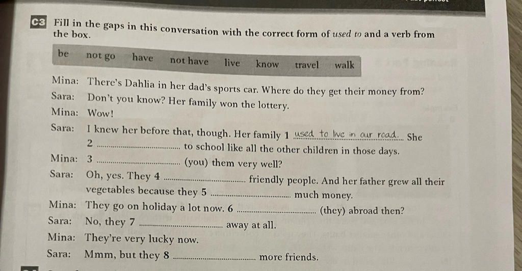 C3 Fill in the gaps in this conversation with the correct form of used to and a verb from
