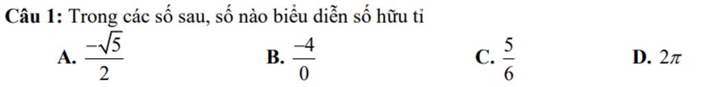 `->` Số hữu tỉ được biểu diễn dưới dạng `a/b;a,bin ZZ, b!=0`