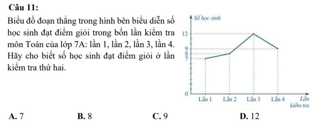 + lần `4` có `9` học sanh đạt điểm giỏi