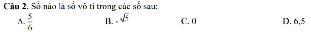 `@` Số vô tỉ là các số viết được dưới dạng số thập phân vô hạn không tuần hoàn.