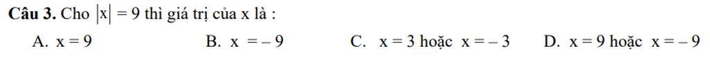 `=>` Chọn `D.` `x=9` hoặc `x=-9`