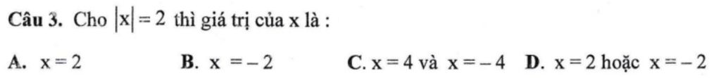 `=>` Chọn `D.` `x=2` hoặc `x=-2`