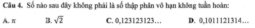 `-` Câu `4.` Số nào sau đây không phải là số thập phân vô hạn không tuần hoàn`:`