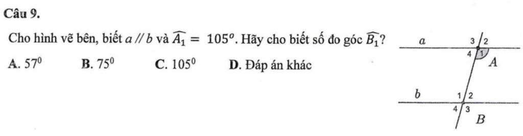 Mà `\hat(A_1) = 105^o => \hat(B_1) = 105^0`