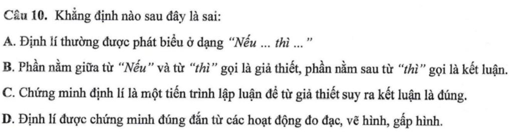 Định lí là một khẳng đinh trong khẳng định đã biết.