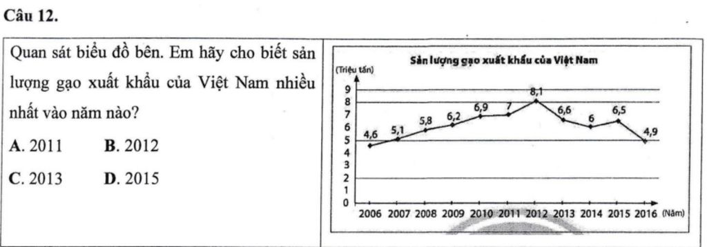Quan sát biểu đồ bên. Em hãy cho biết sản