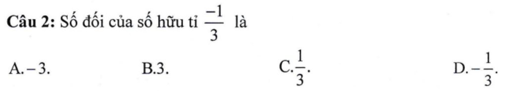 `-` Số đối của `-1/3` là `1/3`