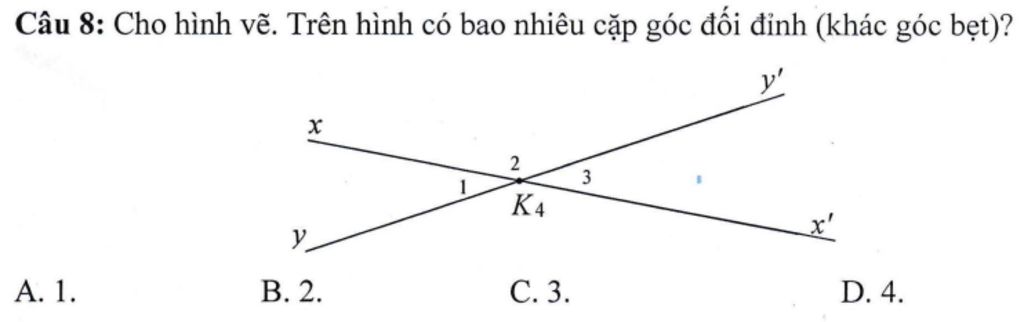 Có `2` cặp góc đối đỉnh: