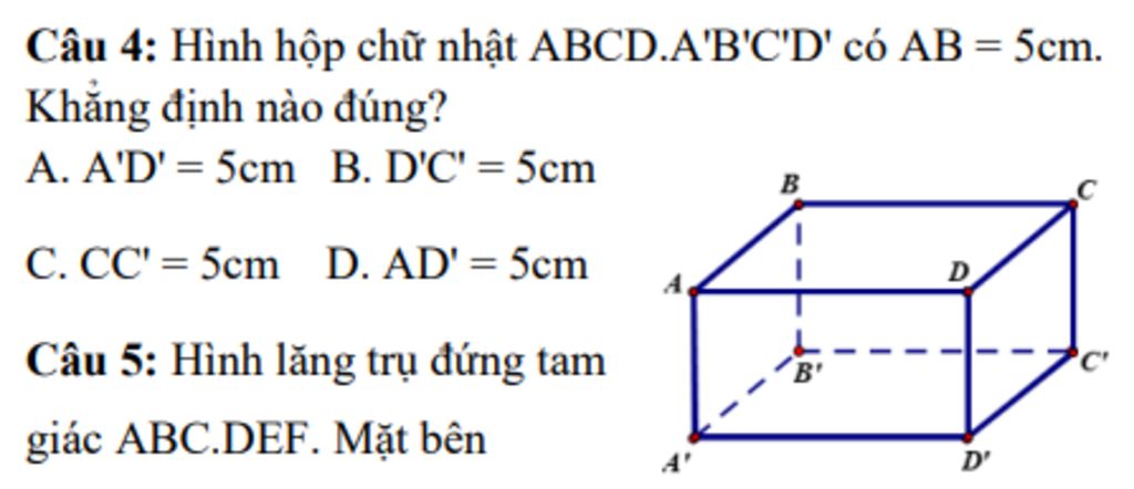 Ta có: `ABCD.A'B'C'D'` là hình hộp chữ nhật