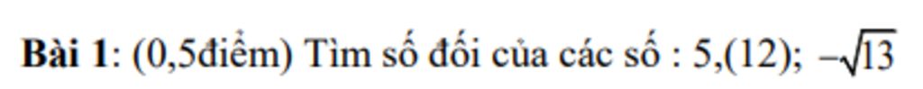 Số đối cuả `5,(12) ; -sqrt13` lần lượt là`:`