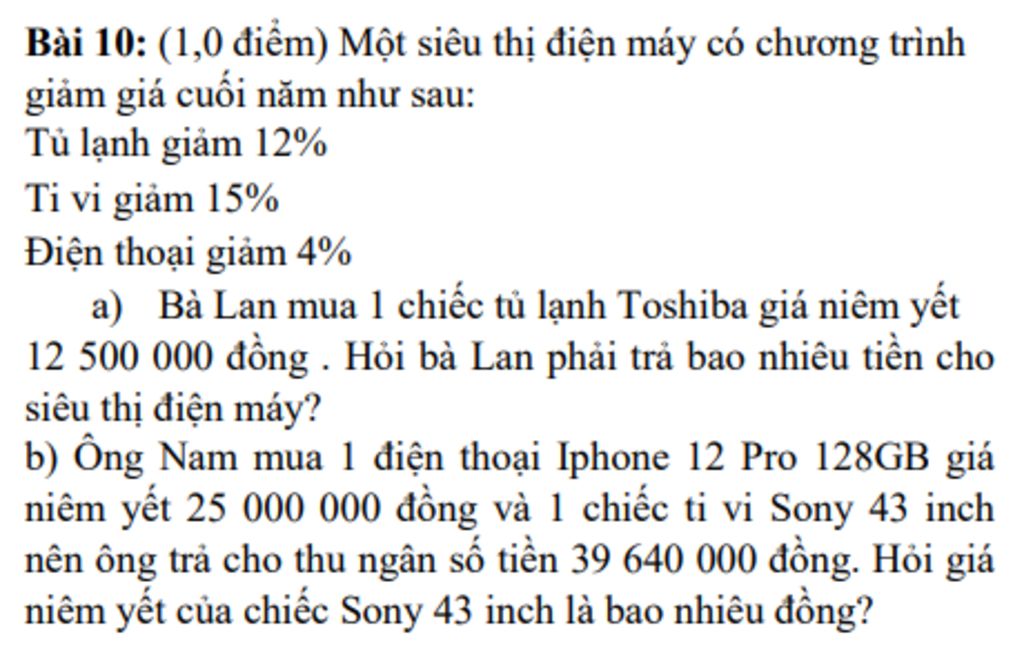 a) Bà Lan phải trả cho siêu thị điện máy số tiền là: