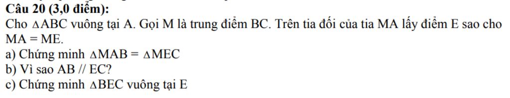 `b)` Ta có: `ΔMAB=ΔMEC(cmt)`