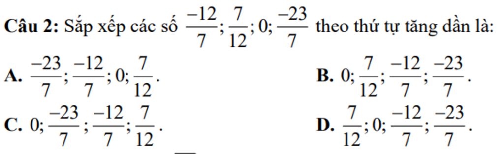 Vậy ta sắp xếp như sau: `-23/7;-12/7;0;7/12`