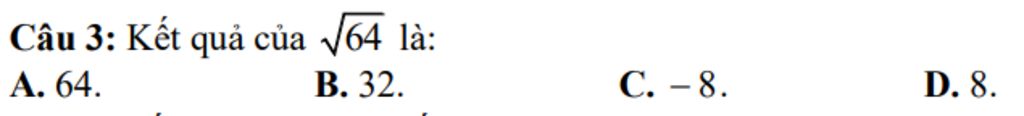 Ta có `:sqrt{64}=(sqrt{8})^2=8`
