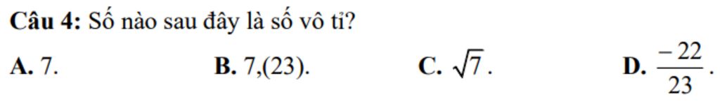 $\sqrt{7}$ `= 2,645751... ∈ I`