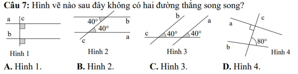 Hình `4:` Ta có thấy hai góc so le trong không bằng nhau