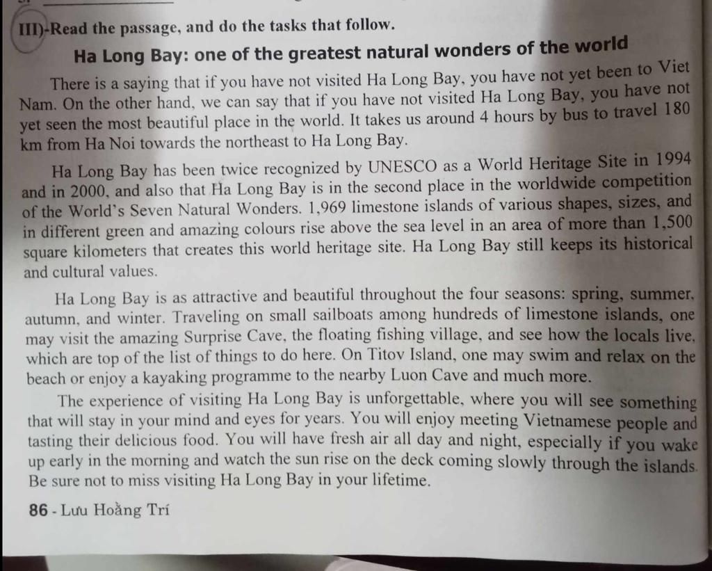 `-` "if you have not visited Ha Long Bay, you have not yet seen the most beautiful place in the world."