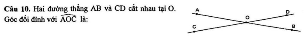 `=>` Góc đối đỉnh với `hat{AOC` là `hat{DOB`