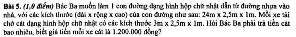 Bác Ba phải trả số tiền cát là `:`