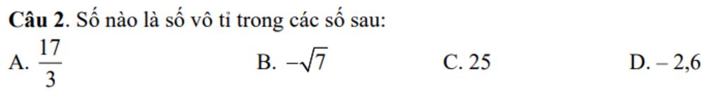 `-\sqrt{7}=-2,645751...` mà `-2,645751...` là số thập phân vô hạn không tuần hoàn