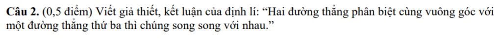 `-` Giả thiết `:` Hai đường thẳng phân biệt cùng vuông góc với một đường thẳng thứ ba