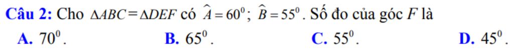 `⇒` $\hat{D}$`= 60^o` và $\hat{E}$ `= 55^o`