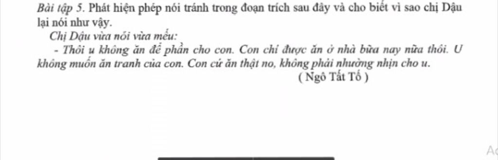 Phát hiện phép nói tránh trong đoạn trích sau đây và cho biết vì sao chị Dậu lại nói như vậy.
