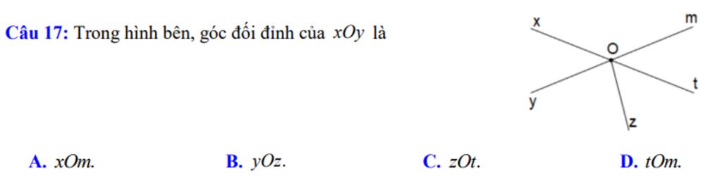 `⇒` `hat{xOy}` và `hat{mOt}` là `2` góc đối đỉnh.