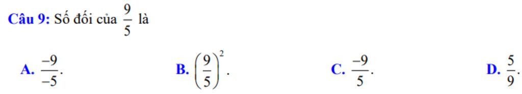 `=>` Số đối của `9/5` là `-9/5`