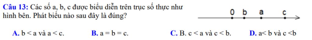 dựa vào trục số thực ta có `a,b,c>0`