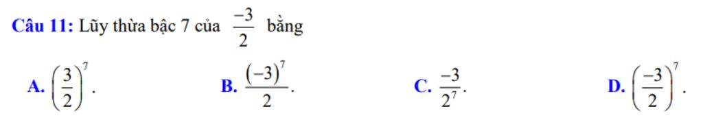 Suy ra `:` Lũy thừa bậc `7` của `(-3)/2` là `((-3)/2)^7`