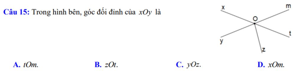 `hat{xOy}` đối đỉnh với `hat{tOm}`