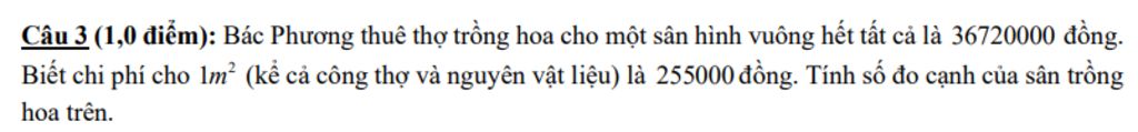 Vì sân trồng hoa hình vuông nên số đo cạnh bình phương lên sẽ bằng diện tích sân, số đo cạnh là căn bậc hai của diện tích sân trồng hoa.
