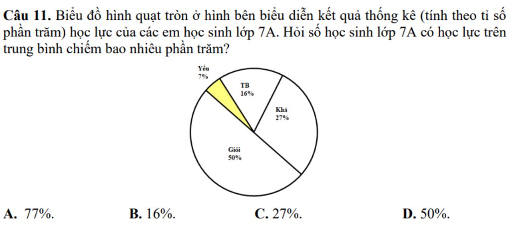 Học sinh lớp 7 có học lực trên trung bình chiếm `16%`