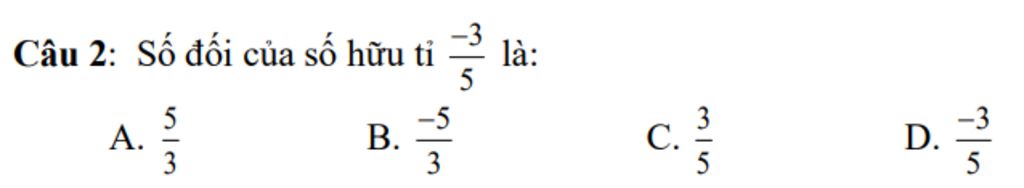 `=>` Số đối của số hữu tỉ `(-3)/(5) = 3/5`