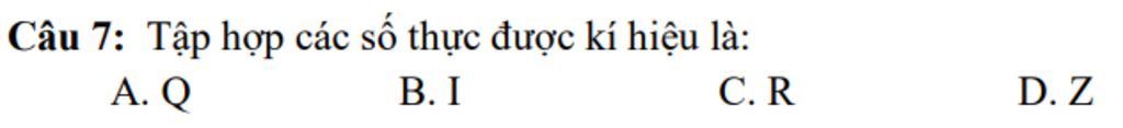 `-` Tập hợp các số thực được kí hiệu là `:` `RR`