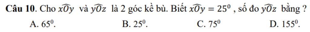 Vì `hat{xOy}` và `hat{yOz}` là hai góc kề bù