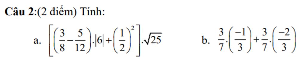 `a, [(3/8 - 5/12) . |6| + (1/2)^2] sqrt25 `