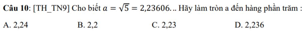 Vậy `a=sqrt(5)=2,23606...~~2,24`