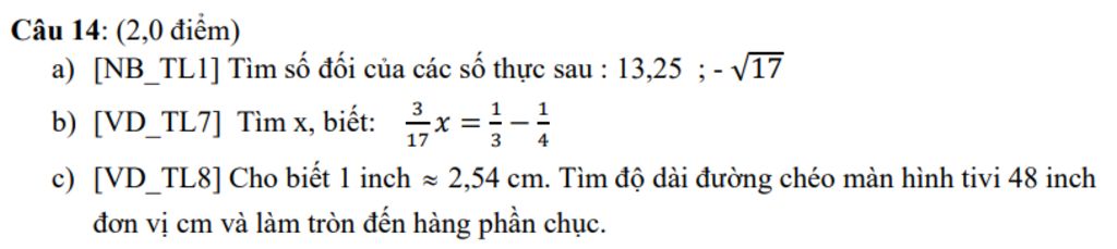 Độ dài đường chéo màn hình tivi được tính theo đơn vị `cm` :