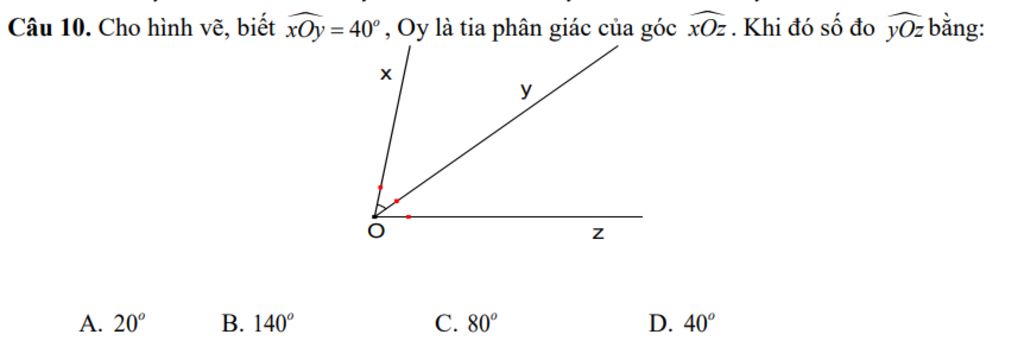 Nên `hat{xOy}=hat{yOz}=40^o`