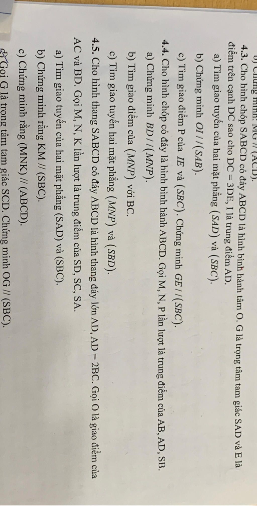 4.3. Cho hình chóp SABCD có đáy ABCD là hình bình hành tâm O. G là trọng tâm tam giác SAD và E là