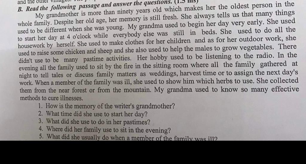 whole family. Despite her old age, her memory is still fresh. She always tells us that many things