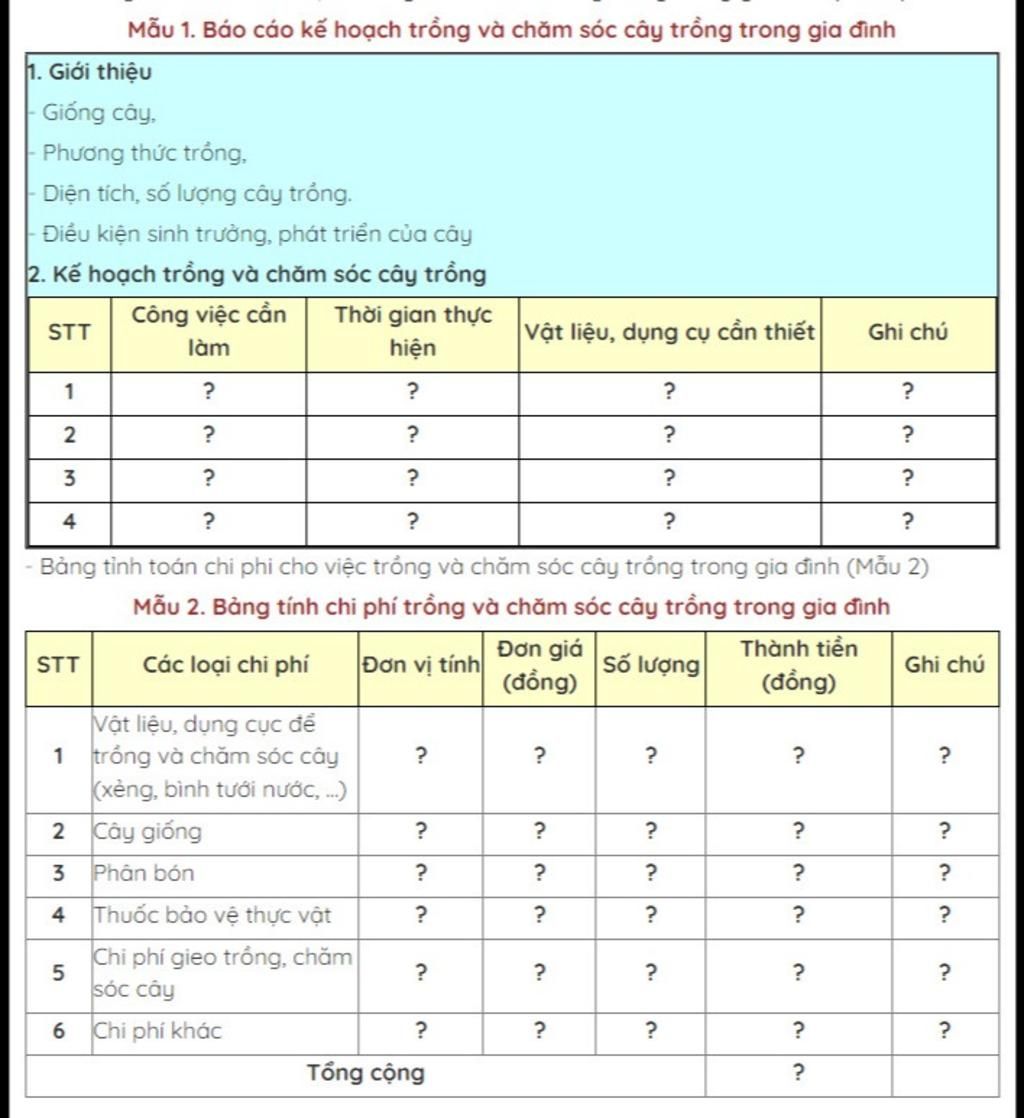 2. Kế hoạch trồng và chăm sóc cây trồng