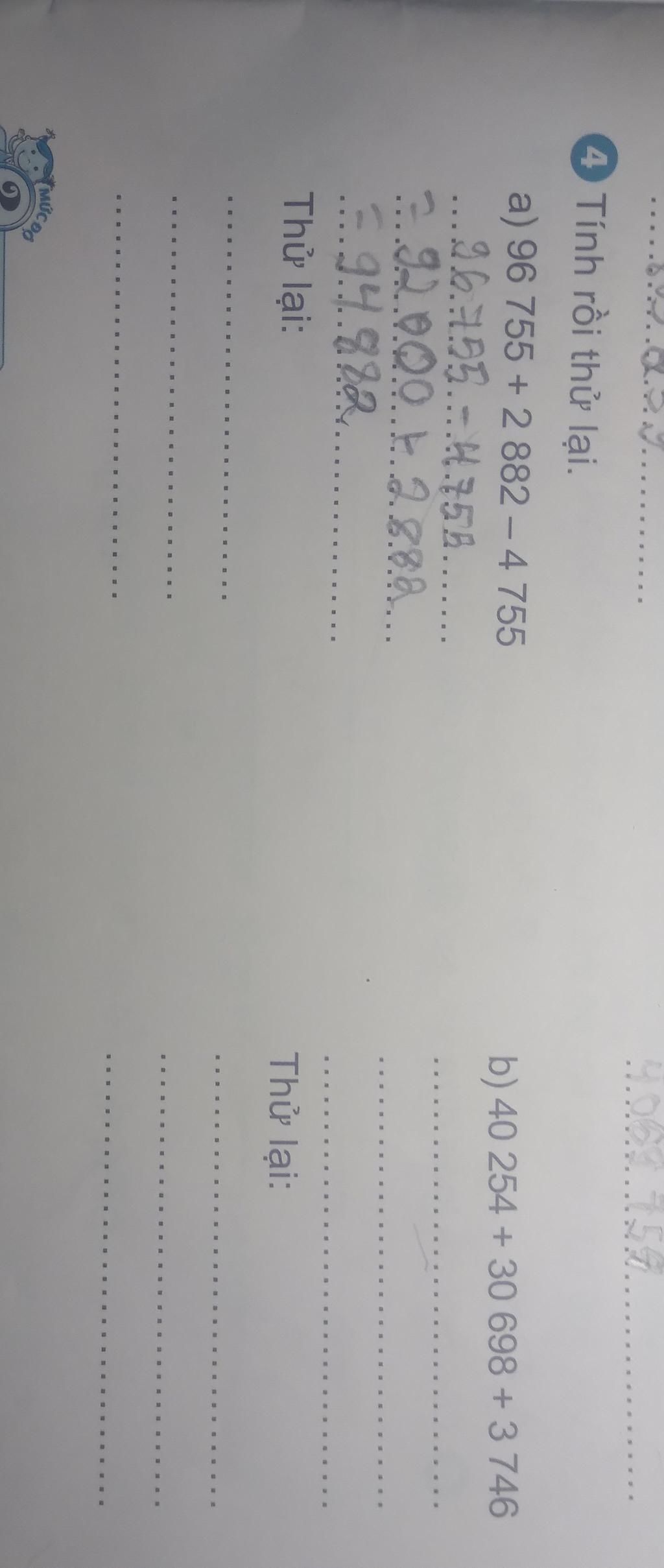 `a,` Cách `1:` `96755 + 2882 - 4755`