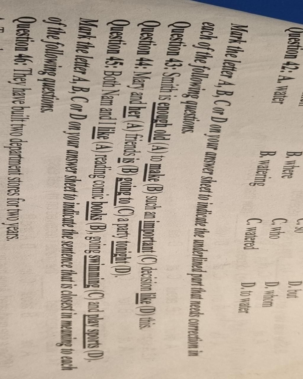 `45.` `D` `->` playing sports